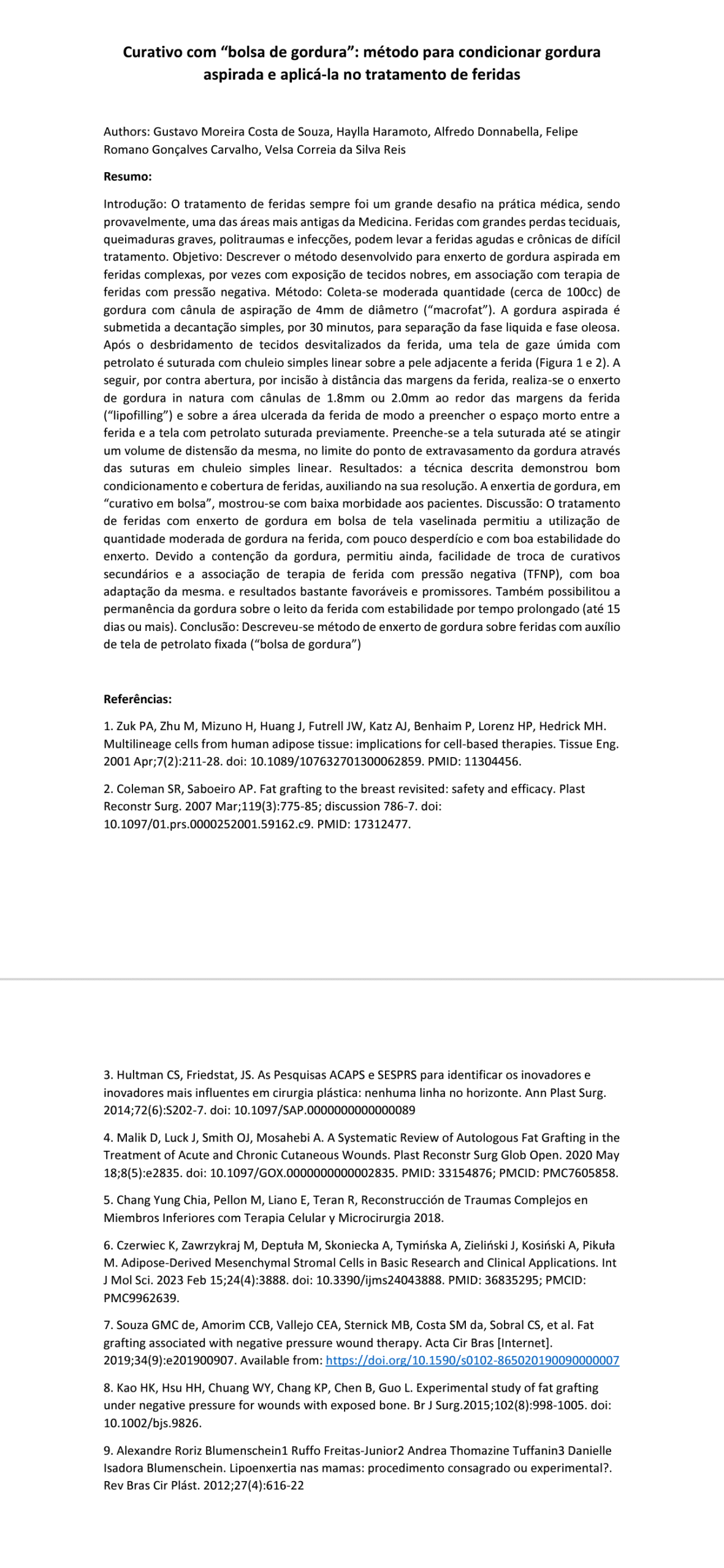 Avaliando a qualidade dos estudos relatando aplicações clínicas da fração vascular estromal: Uma revisão sistemática e proposta de novas guidelines (CLINIC-STRA_SVF)
